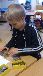 Talen stod på lappar och det gällde att, med pengar, visa att man visste vad siffrorna i talet stod för.